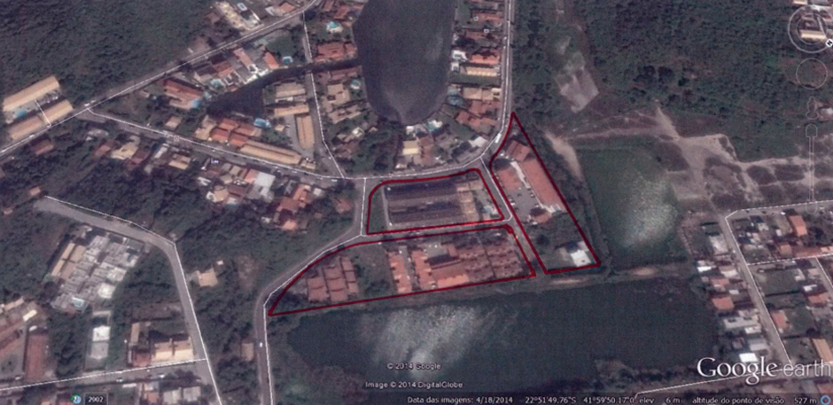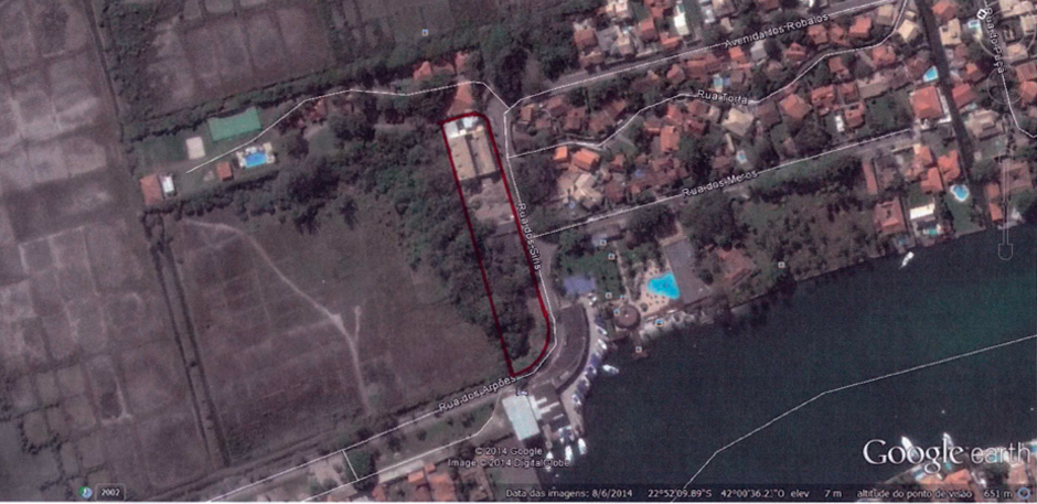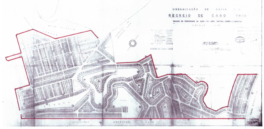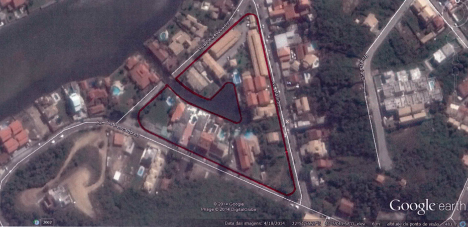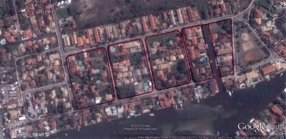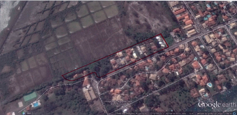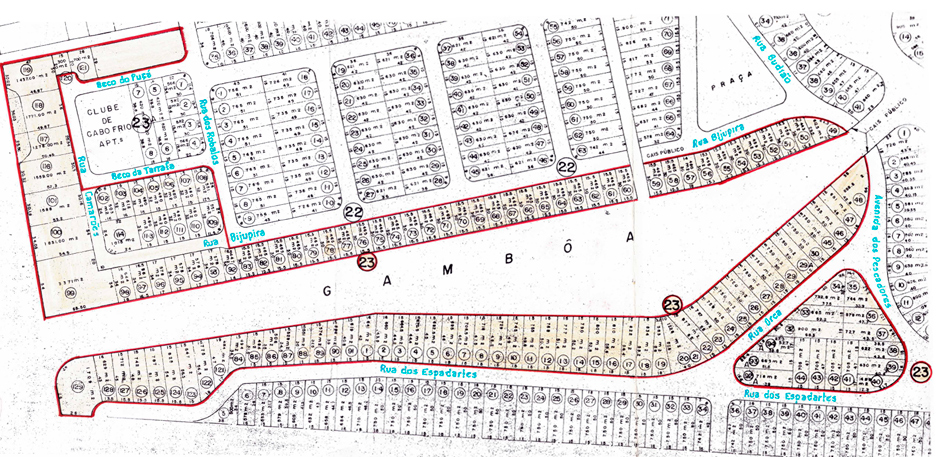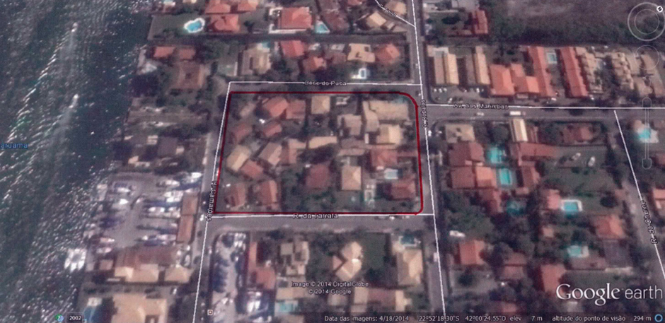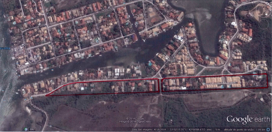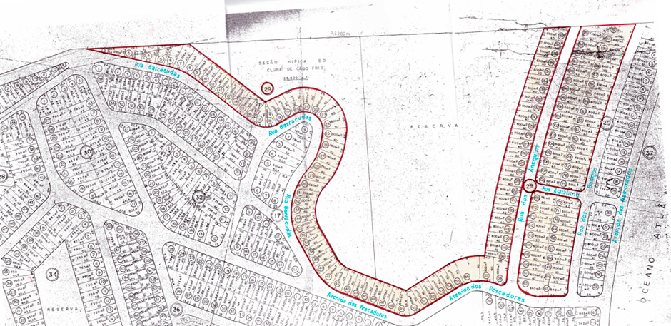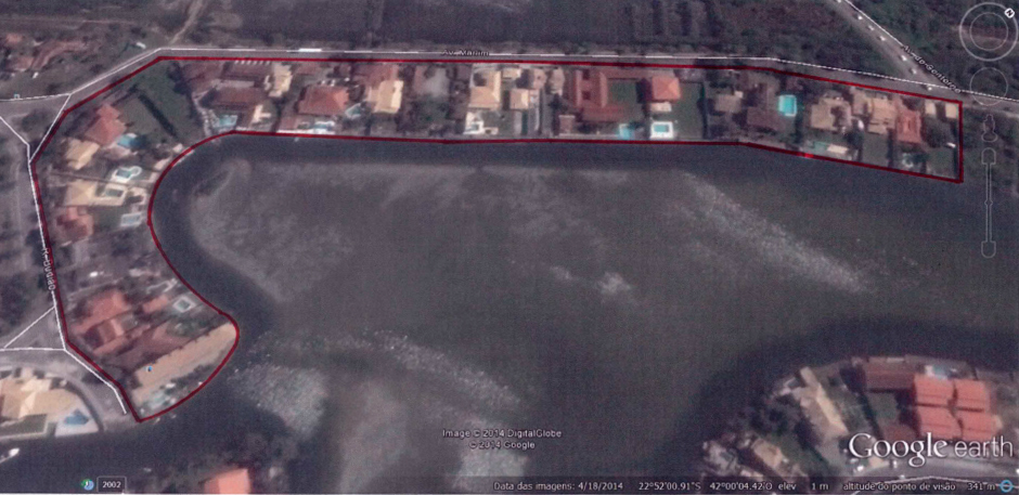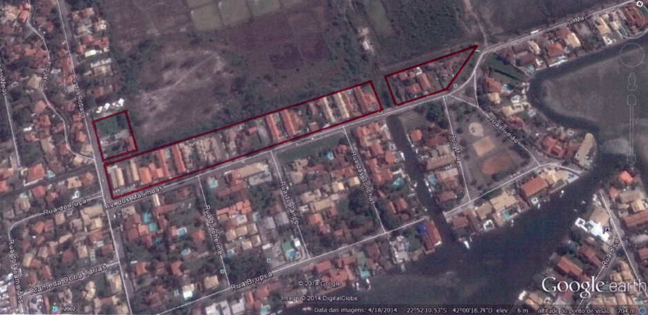 A demarcação da área de loteamento que foi aprovada pela Prefeitura Municipal de Cabo Frio: