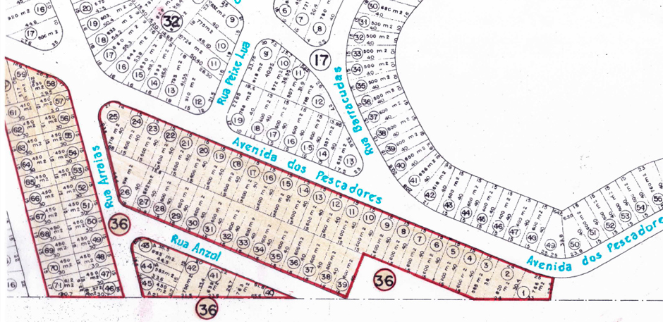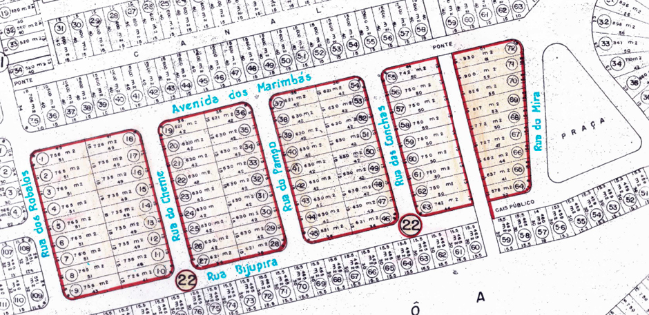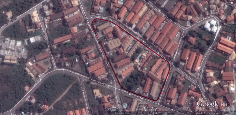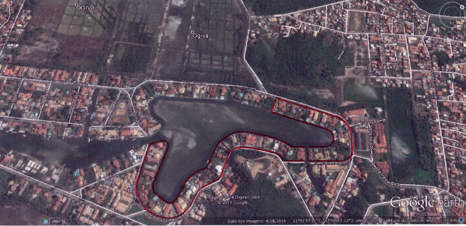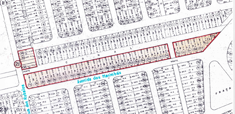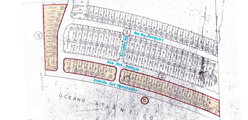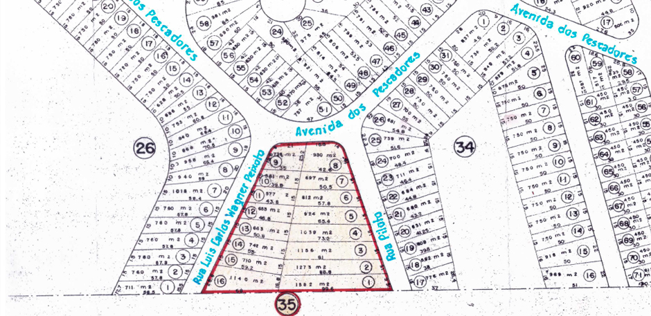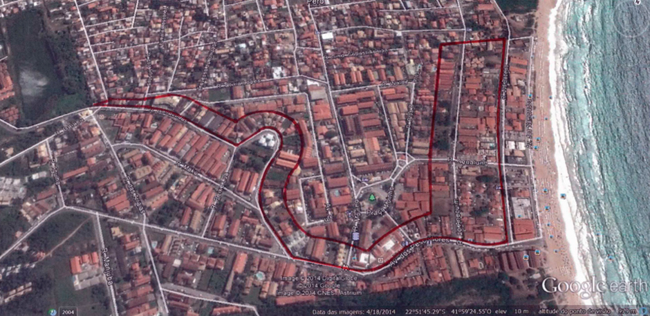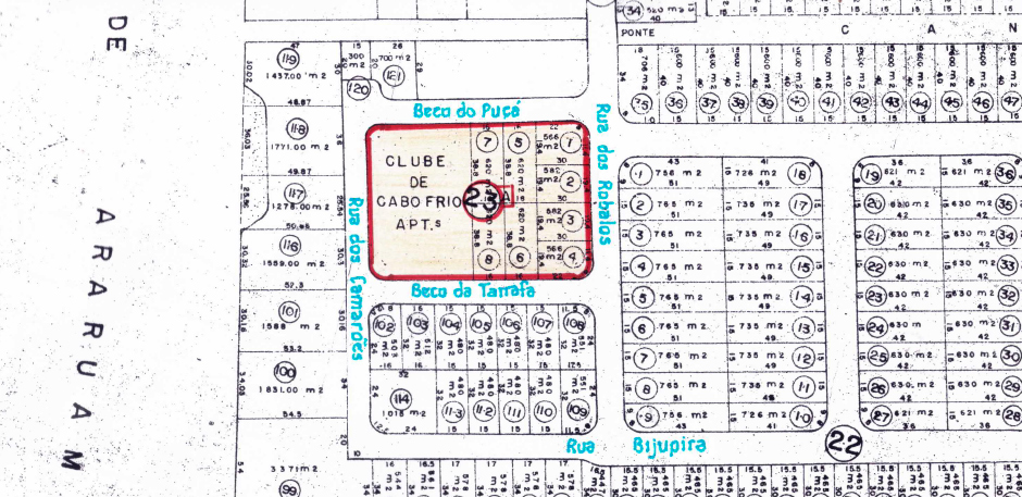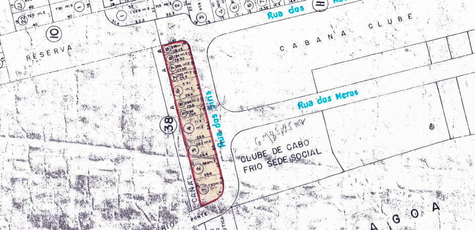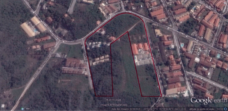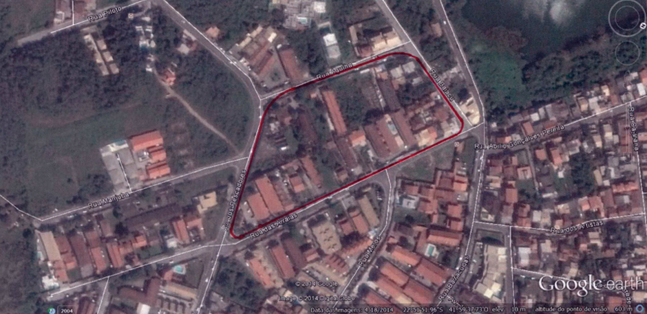 A demarcação da área de loteamento que foi aprovada pela Prefeitura Municipal de Cabo Frio: