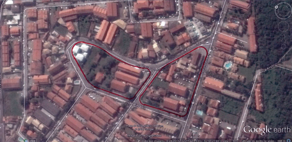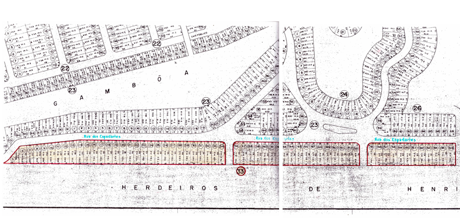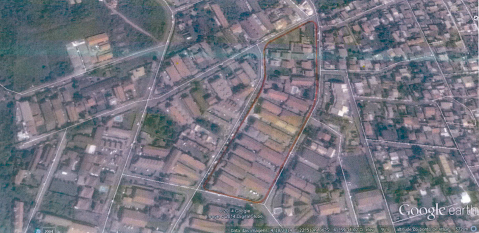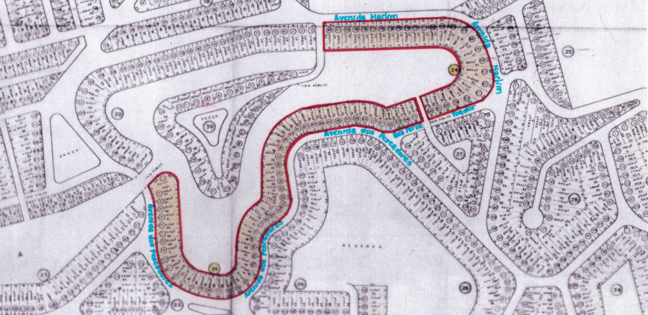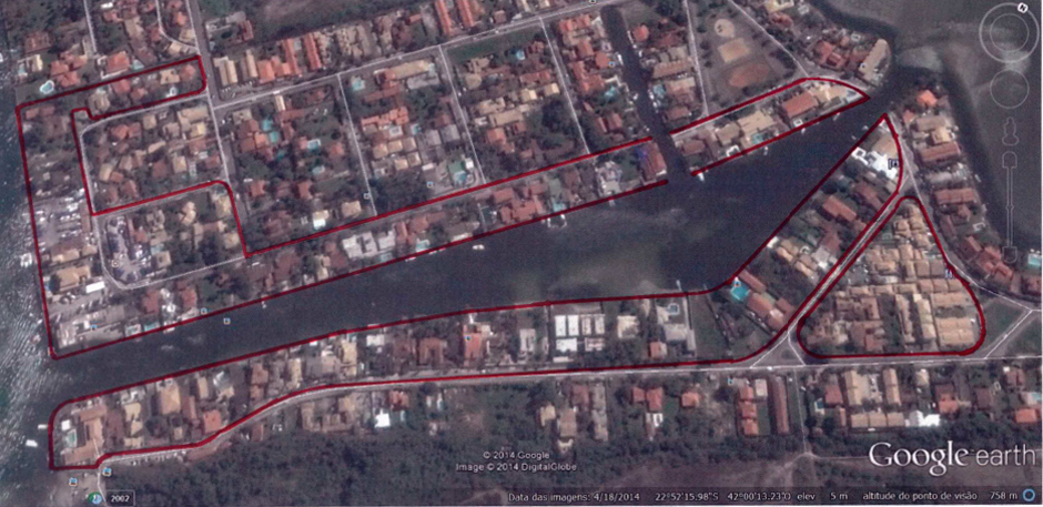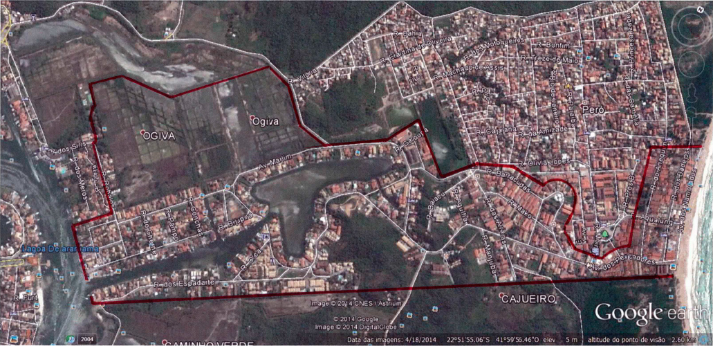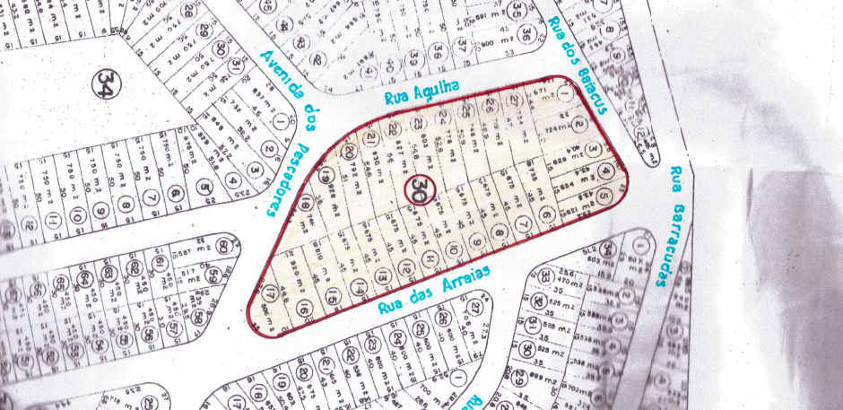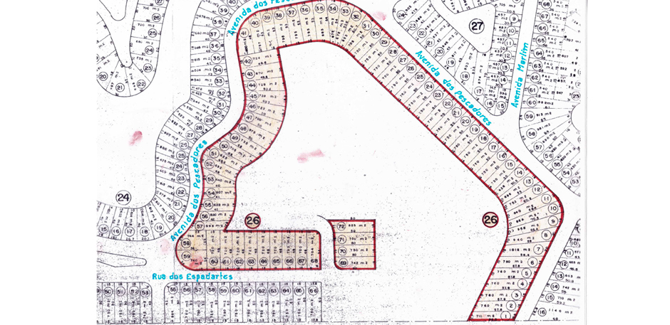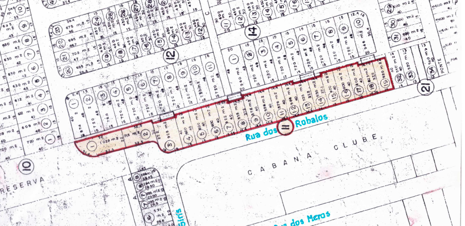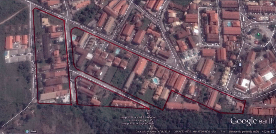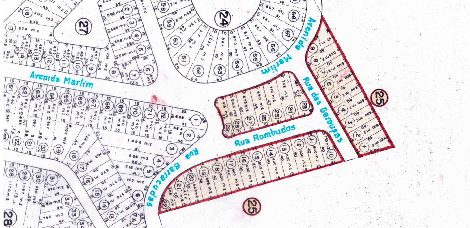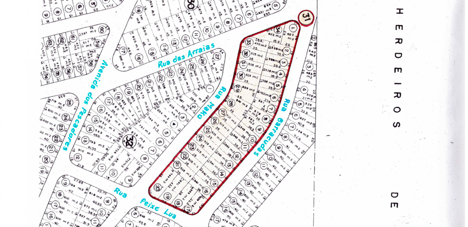 A demarcação da área de loteamento que foi aprovada pela Prefeitura Municipal de Cabo Frio: